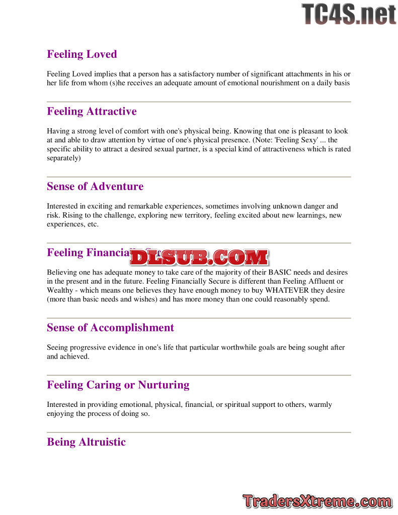 Emotional Benefit List - JPG Image File