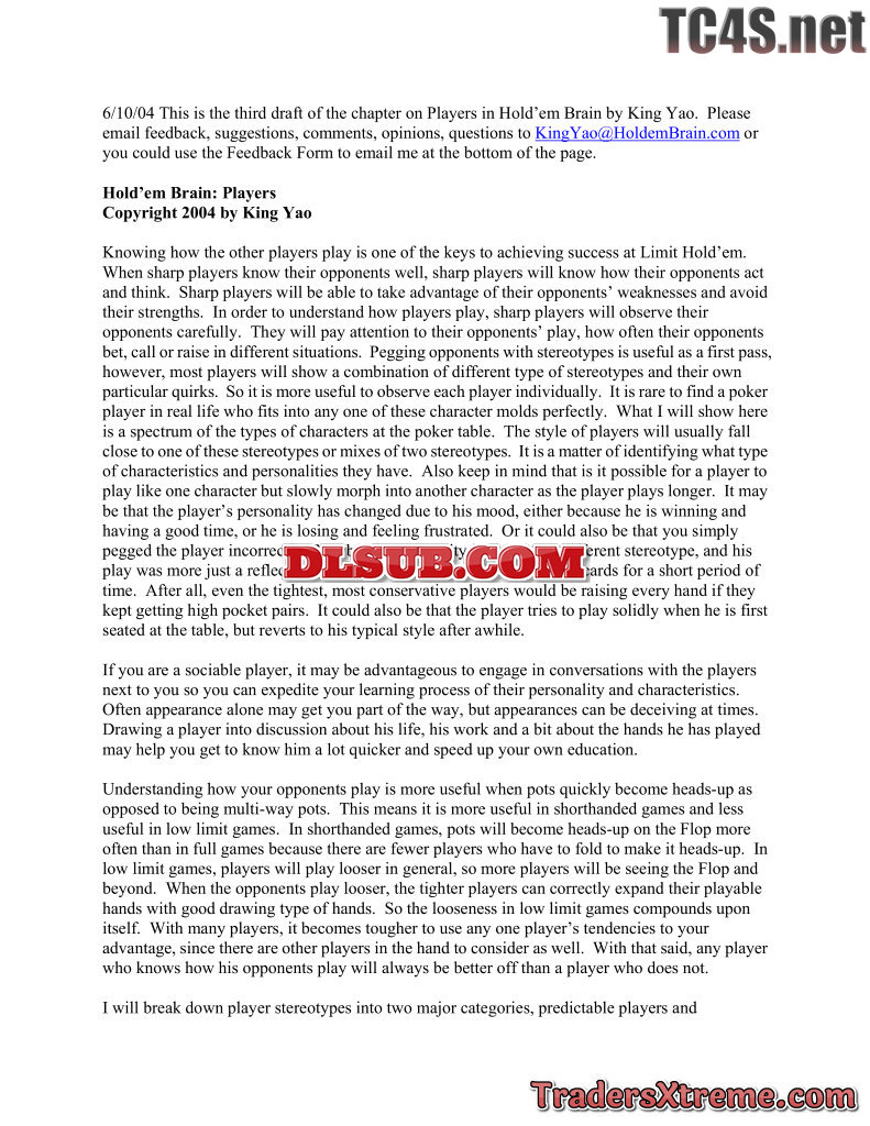 King Yao Holdem Brain